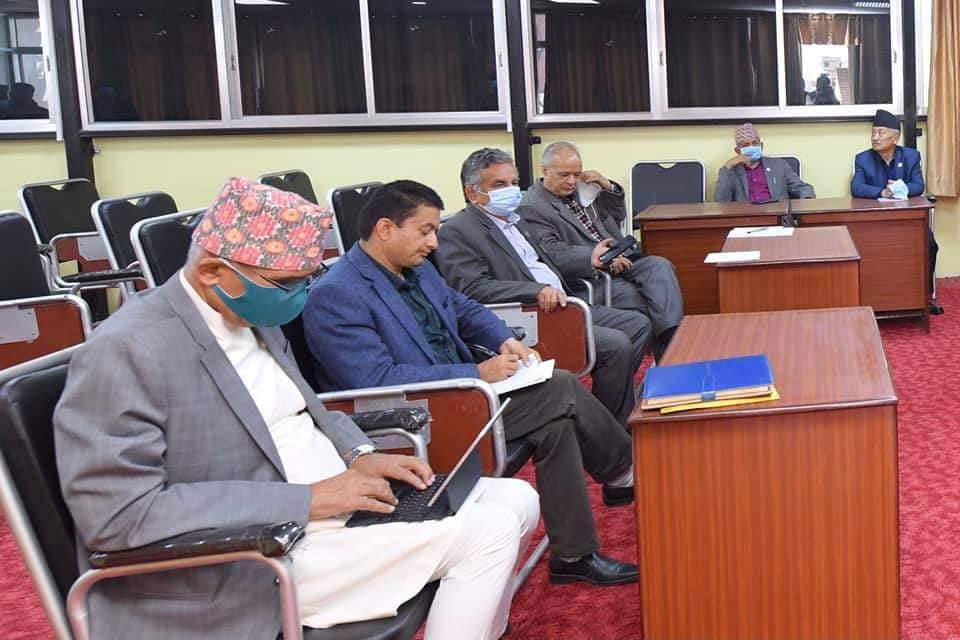 जारी छलफलमा ओलीसहित उनका तर्फबाट ईश्वर पोखरेल, विष्णुप्रसाद पौडेल, प्रदीपकुमार ज्ञवाली र सुवास नेम्वाङ उपस्थित छन् ।
