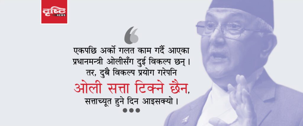 एकपछि अर्को गलत काम गर्दै आएका प्रधानमन्त्री ओलीसँग दुई विकल्प छन् । तर, दुबै विकल्प प्रयोग गरेपनि ओली सत्ता टिक्दैन । सत्तच्यूत हुने दिन नजिकियो ।