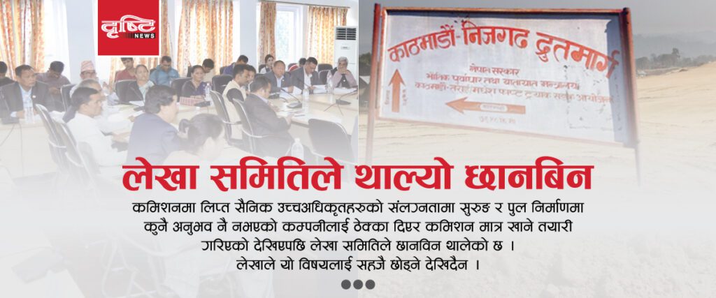 तर कमिशनमा लिप्त सैनिक उच्चअधिकृतहरुको सलग्नतामा सुरुङ र पुल निर्माणमा कुनै अनुभव नै नभएको कम्पनीलाई ठेक्का दिएर कमिशनमात्र खाने तयारी भएको देखिएपछि लेखा समितिले यो विषयलाई सहजै छोड्ने देखिएको छैन ।
