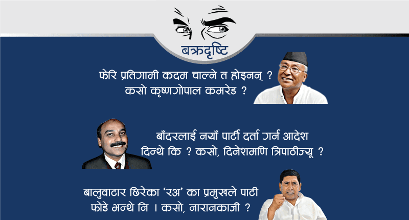 (व्यङ्ग्यात्मक पस्तुती ‘बक्रदृष्टि’ दृष्टि साप्ताहिकको स्तम्भ हो ।)