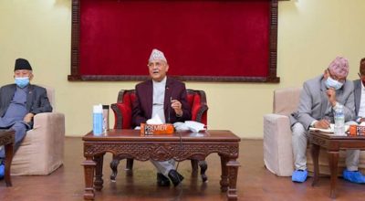 काठमाडौं । अध्यक्षको एकलौटी निर्णयका कारण आफुहरु नसमेटिएको गुनासो गर्दै एउटा समूह छेउ लागिरहेका बेला नेकपा एमालेको संस्थापन खेमाले पाटी अध्यक्ष्य एवम् प्रधानमन्त्री केपी शर्मा ओलीलाई नै थप अधिकार सुम्पिएको छ । शनिबानरको केन्द्रीय कमिटी बैठकबाट ओलीले केन्द्र र प्रदेशसभाका समानुपातिक सांसदाको बन्दसुची एक्लै हेरफेर गर्नेसम्म अधिकार पाएका छन् । बालुवाटार सम्बद्ध स्रोतका अनुसार अब … Continue reading एमालेमा अध्यक्षलाई एकाधिकार