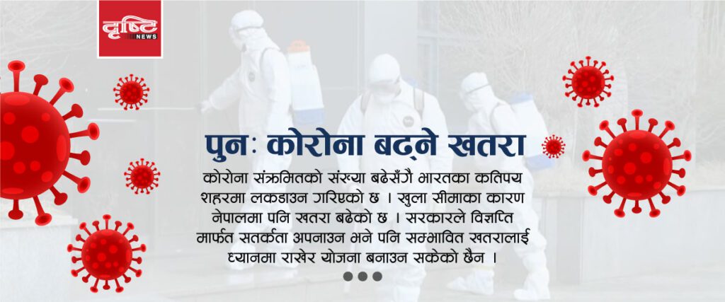 वीरगञ्जस्थित नारायणी अस्पतालको प्रयोगशालमा आइतबार ५० जनाको पीसीआर परीक्षण गर्दा १० जनामा कोरोना पुष्टि हुनुले पुनः संक्रमणको दर बढ्ने हो कि भन्ने प्रश्न उब्जिएको छ । सरकारको विज्ञप्तिले पनि त्यस्तै संकेत गर्छ ।