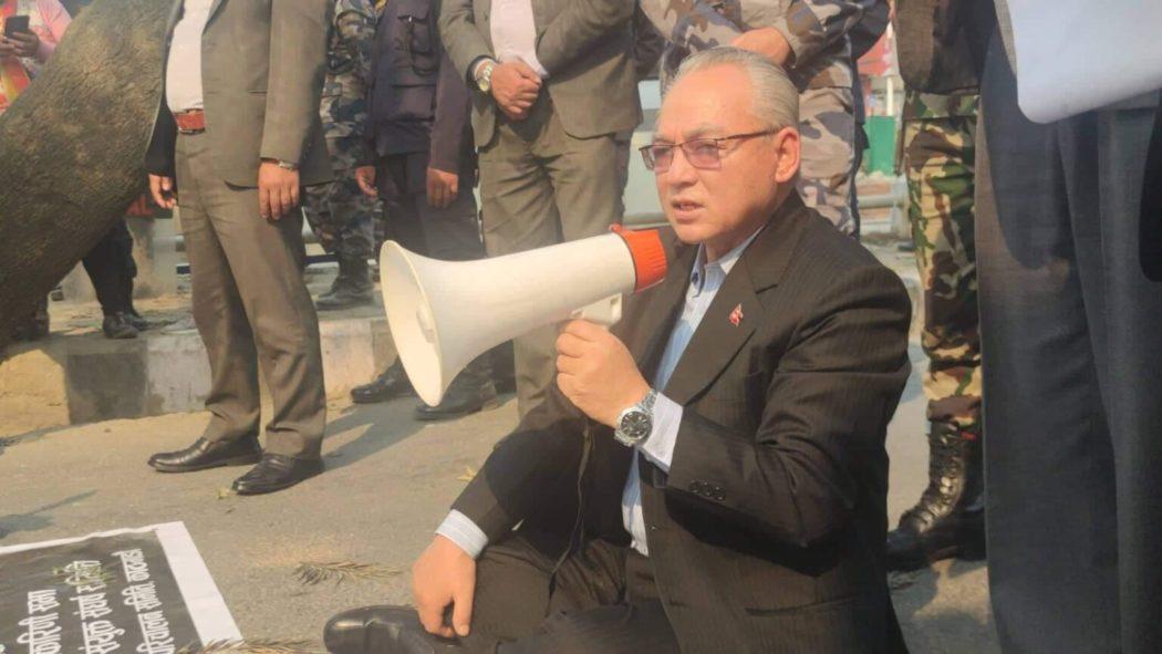 सांसद चौधरीको रिहाइको माग गर्दै बसेको धर्नामा पुगे गृहमन्त्री