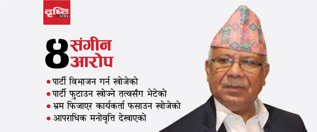 काठमाडौं । नेकपा (एमाले)का अध्यक्ष केपी शर्मा ओलीले वरिष्ठ नेता माधवकुमार नेपाललाई कारबाही गर्दै पार्टीको दशौं महाधिवेशन आयोजक कमिटी सदस्य र पार्टीका अन्य सबै जिम्मेवारी तथा पार्टी सदस्यताबाटै हाललाई ६ महिनाको लागि निलम्बन गरेका छन् । उनले चार संगीन आरोप लगाएका छन् ।