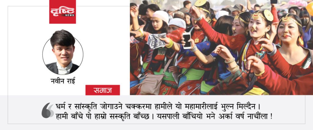 हामीले बनाएको रितिरिवाज हामीभन्दा ठूलो पक्कै होइन । धर्म र सांस्कृति जोगाउने चक्करमा हामीले यो महामारीलाई भुल्न मिल्दैन । हामी बाँचे पो हाम्रो सस्कृति बाँच्छ । यसपाली बाँचियो भने अर्का वर्ष नाचौंला ! जीवन नरहे धर्म, संस्कृति, परम्परा, पर्व पनि रहँदै । हामी बाँचे त हाम्रो संस्कृति छँदैछ, अर्का साल राम्रोसँग मनाउँला नि !