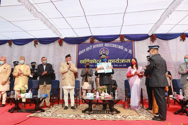 काठमाडौं, २६ चैत । प्रहरी महानिरीक्षक शैलेश थापा क्षेत्रीको प्रमुख आतिथ्यमा बिहीबार आयोजित कार्यक्रमबीच नेपाल प्रहरी अस्पताल महाराजगंजको ३७औं वार्षिकोत्सव समारोह सम्पन्न भएको छ ।