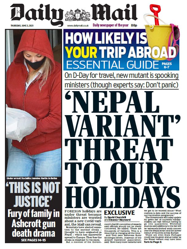 काठमाडौं । बेलायतको चर्चित ट्याब्लेट पत्रिका डेली मेलले बिहीबार नेपालको बदनाम गराउने मुख्य समाचार छापेको छ । नेपालमा कोरोनाको नयाँ भेरियन्ट देखिएको र त्यसले यूरोपलाई