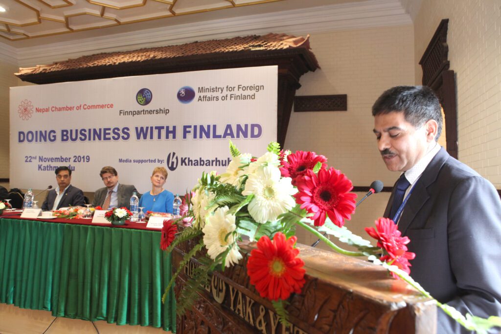 काठमाडौं, ८ मंसिर । उद्योग वाणिज्य तथा आपूर्ती मन्त्रलायका वाणिज्य तथा आपूर्ति सचिव डा.बैकुण्ठ अर्यालले फिनल्याण्डका उद्योगी व्यवसायीहरुलाई नेपालमा लगानी गर्न आग्रह गर्नुभएको छ ।