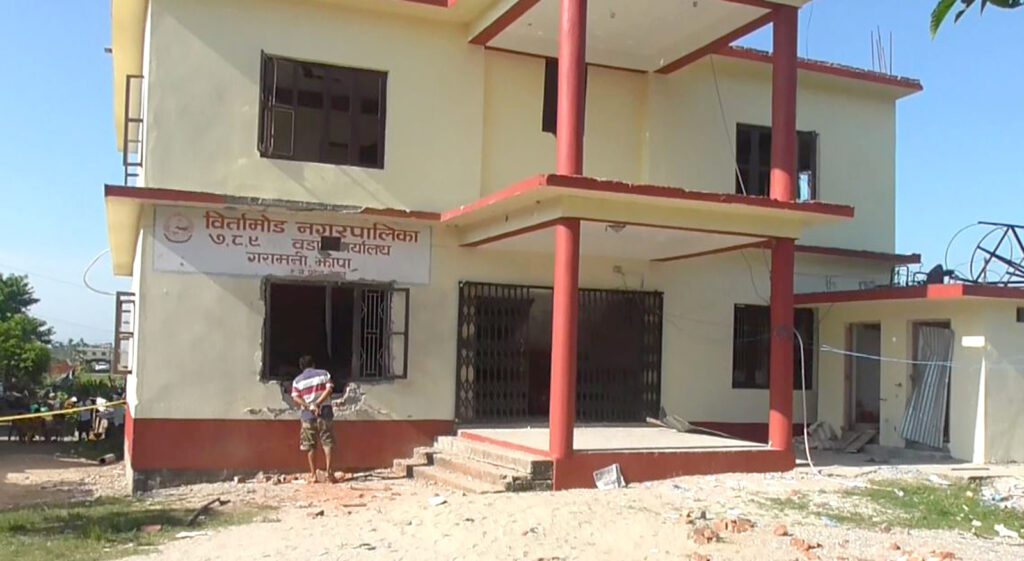 झापा । अज्ञात समूहले झापाको बिर्तामोडस्थित वडा कार्यालयको भवनमा आज बिहान बम विष्फोट गराएको छ । बिर्तामोड नगरपालिकाको ७, ८ र ९ नम्बरको संयुक्त वडा