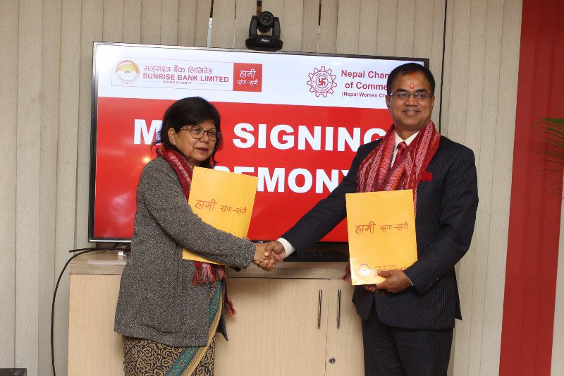 काठमाडौँ । सन्राइज बैंक तथा नेपाल चेम्बर अफ कमर्सअन्तर्गतको महिला चेम्बर अफ कमर्सबीच व्यापार साझेदारसम्बन्धी सम्झौता भएको छ । बैंकका प्रमुख कार्यकारी अधिकृत जनक शर्मा