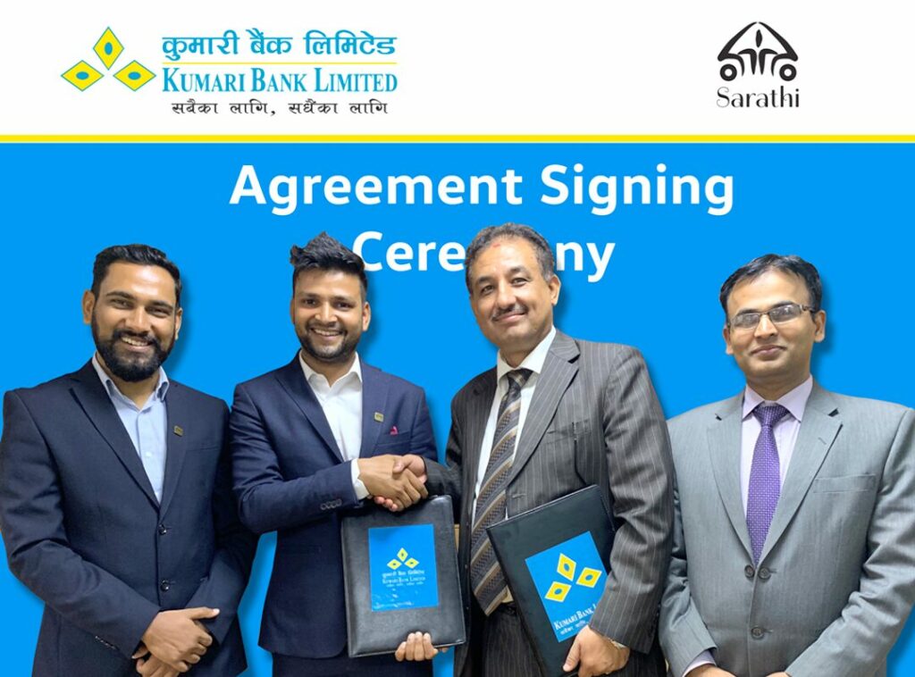 काठमाडौं । कुमारी बैंक लिमिटेडले देशकै सबभन्दा व्यापक रूपमा परिचित ट्याक्सी सेवा प्रदायक कम्पनी, सारथी प्राइभेट लिमिटेडसँग ब्रान्डिङ सहकार्य गरेको छ । उक्त सम्झौतापत्रमा कुमारी