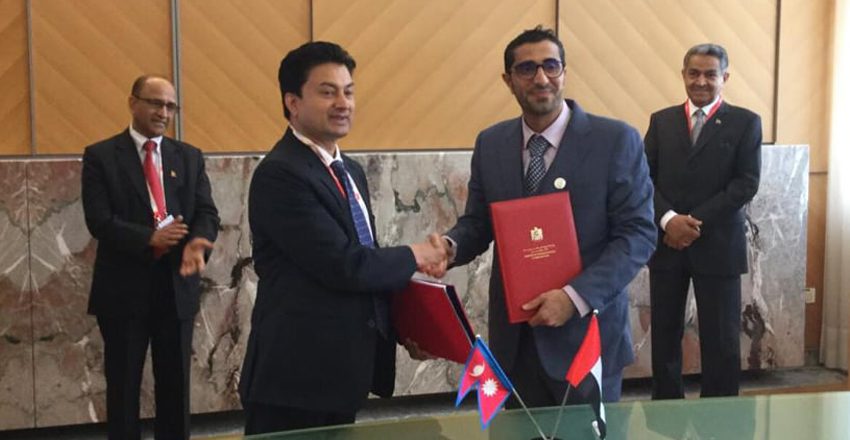 काठमाडौं । नेपाल र संयुक्त अरब इमिरेट्स (युएई)बीच श्रम समझदारी पत्रमा हस्ताक्षर भएको छ । स्वीट्जरल्याण्डको जेनेभामा आज आयोजित विशेष समारोहमा श्रम, रोजगार तथा सामाजिक