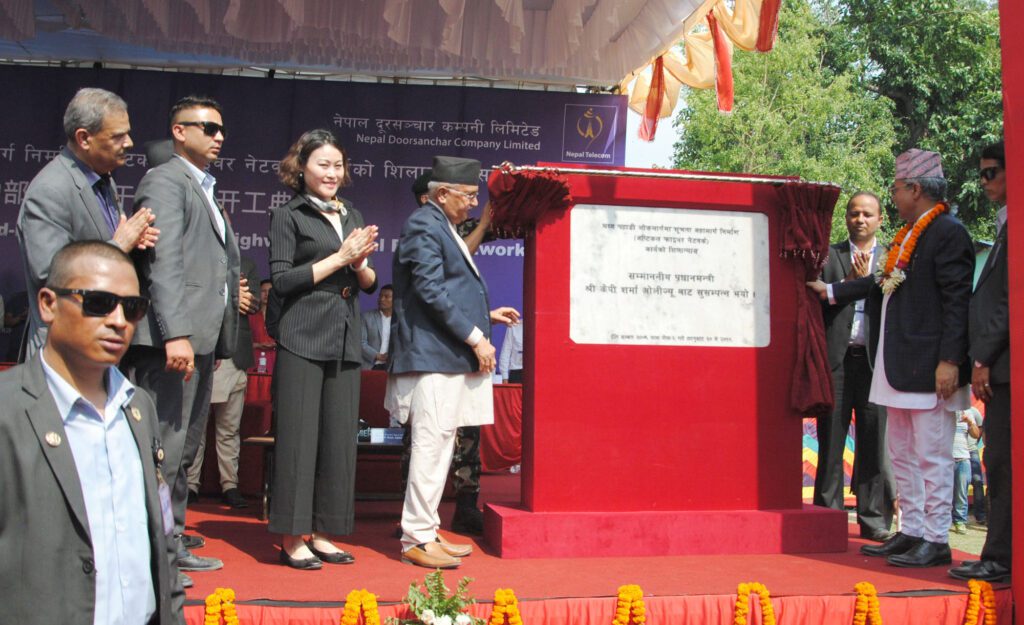 काठमाडौं । प्रधानमन्त्री केपी शर्मा ओलीले जेठ ६ गते सोमबार धादिङको गल्छीमा नेपाल दूरसञ्चार प्राधिकरण र नेपाल टेलिकमद्धारा आयोजित एक भव्य समारोहकाबीच मध्यपहाडी लोकमार्गमा सूचना