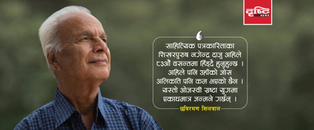 नेपाली साहित्यिक पत्रकारिताका शिखरपुरुष नगेन्द्रराज शर्मासँग मैले पनि साहित्यिक यात्राको क्रममा सहभागी हुने अवसर प्राप्त गरेको थिएँ । पहिलोपटक हेटौँडा र दोस्रोपटक मन्थली । अहिले