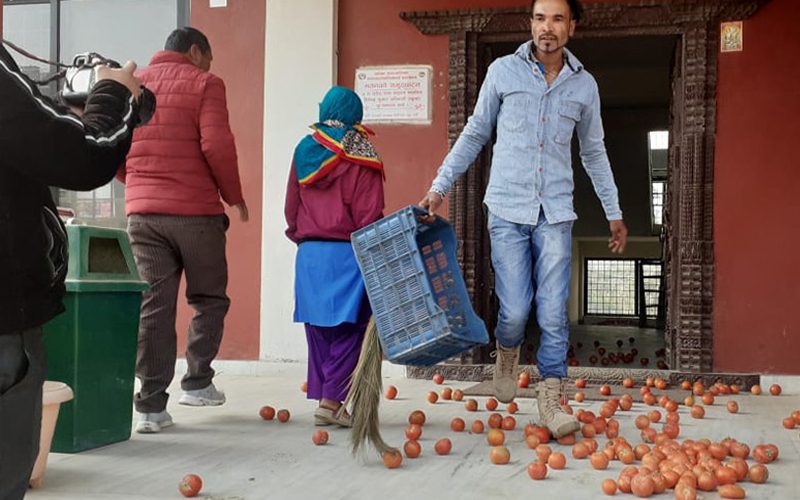नवलपरासी, ५ फागुन । नवलपारसीको बर्दघाट नगरपालिकाका किसानले नगरपालिका कार्यालयमा टमाटर फालेर विरोध प्रदर्शन गरेका छन् । उत्पादनले बजार नपाएका बेला आयातित टमाटर बिक्री भइरहेको