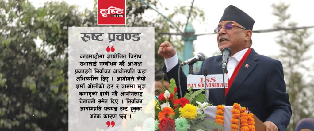 काठमाडौं, २८ माघ । प्रतिनिधिसभा विघटनविरुद्ध नेकपा प्रचण्ड–माधव समूहले बुधबार काठमाडौंमा जनसभा आयोजना गर्यो । सभालाई सम्बोधन गर्दै अध्यक्ष प्रचण्डले निर्वाचन आयोगप्रति कडा अभिव्यक्ति दिए