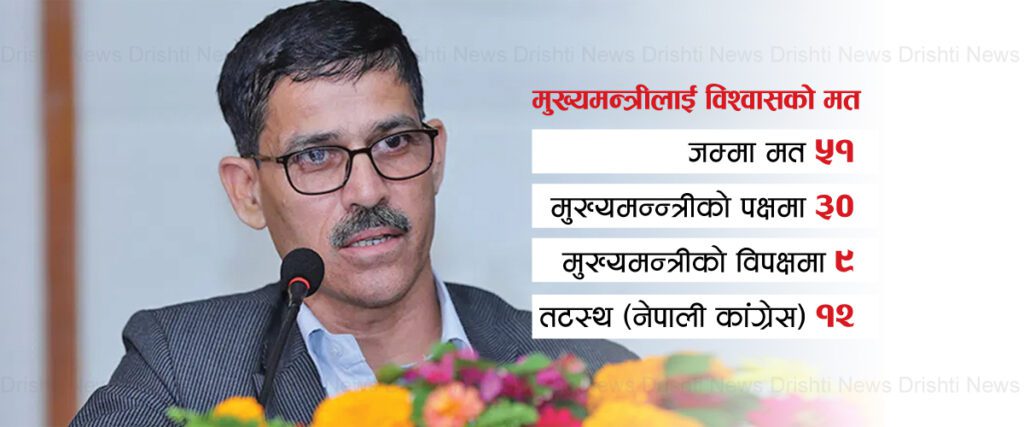 काठमाडौं । नेकपा एमाले सुदूरपश्चिम प्रदेशका अध्यक्ष कर्णबहादुर थापाले पार्टीको निर्देशन विपरीत मुख्यमन्त्रीलाई विश्वासको मत दिने प्रदेशसभा सदस्यलाई कारबाही हुने बताएका छन् । मुख्यमन्त्री त्रिलोचन