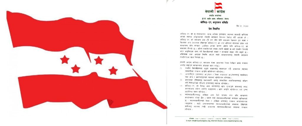 काठमाडौं । नेपाली कांग्रेसले कोरोना भाइरस संक्रमण भयावह हुन नदिन आवश्यक तयारी थाल्न सरकारसँग माग गरेको छ । कांग्रेसको कोभिड–१९ अनुगमन समिति संयोजक प्रकाशशरण महतले