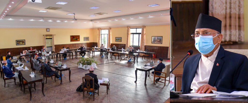काठमाडौं । कामचलाउ बनेको केपी शर्मा ओली नेतृत्वको सरकारले संसद अधिवेशन अन्त्य गर्न राष्ट्रपतिलाई सिफारिस गरेको छ । सोमबार साँझ प्रधानमन्त्रीको सरकारी निवास बालुवाटारमा बसेको