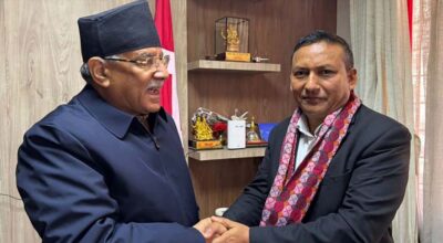 काठमाडौं । सरकारका प्रवक्तासमेत रहेका सञ्चार तथा सूचना प्रविधिमन्त्री जगदीश खरेल र नेकपा एमालेका अध्यक्ष केपी शर्मा ओलीबीच निर्वाचन केन्द्रित छलफल भएको छ । गुण्डुस्थित
