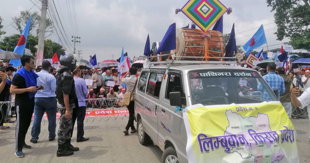 विराटनगर । लिम्बुवान-किरात प्रदेश घोषणा गर्न माग गर्दै विराटनगरमा प्रदर्शन भएको छ । विभिन्न पहिचानवादी संगठनहरुले प्रदेश १ को नाम लिम्बुवान-किरात हुनुपर्ने माग गर्दै प्रदर्शन
