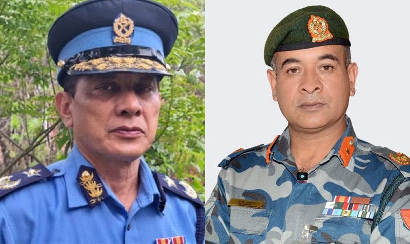 काठमाडौं । नेपाल प्रहरीका आईजीपी धिरजप्रताप सिंह र सशस्त्र प्रहरी बल नेपालका आईजीपी राजु अर्यालले दज्र्यानी चिह्न लगाएका छन् । आज गृह मन्त्रालयमा आयोजित समारोहमा