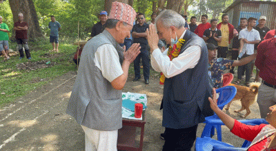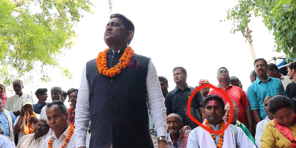 काठमाडौं । पक्राउ पूर्जी जारी भएका धनुषाको वटेश्वर गाउँपालिकाका अध्यक्षका उम्मेदवार श्यामसुन्दर महतो (तस्बिरको रातो घेरामा) दैनिक घरदैलो अभियानमा व्यस्त छन् । तर, उनलाई प्रहरीले
