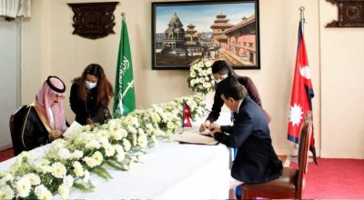 काठमाडौं । दुई दिने औपचारिक भ्रमणका लागि साउदी अरबका विदेशमन्त्री राजकुमार फैसल बिन फहरान अल साउदले राष्ट्रपति विद्यादेवी भण्डारीसँग भेटवार्ता गरेका छन् । मंगलबार राष्ट्रपति