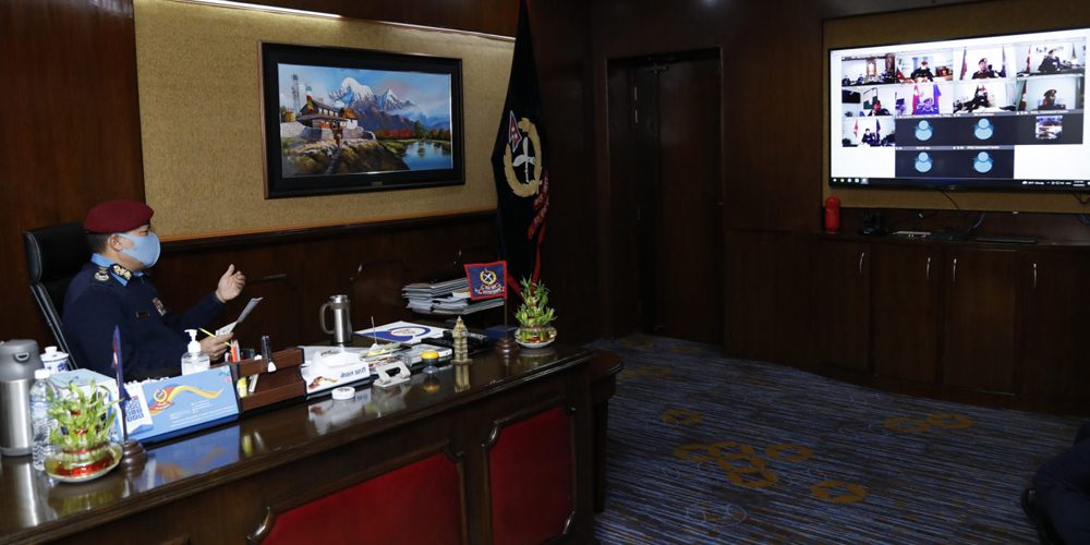 काठमाडौं । प्रहरी महानिरीक्षक शैलेस थापा क्षेत्रीको उपस्थितिमा नेपाल प्रहरीको आ.व. २०७८/०७९ को अर्धवार्षिक कार्य प्रगति समीक्षा कार्यक्रम सोमबार प्रहरी प्रधान कार्यालयमा भर्चुअल रूपमा सम्पन्न