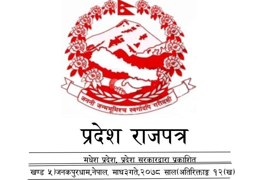 जनकपुरधाम । मधेस प्रदेश सरकारले आफ्नो स्थायी नाम र राजधानी राजपत्रमा प्रकाशित गरेको छ । प्रदेशको नाम र राजधानी दुई तिहाइभन्दा बढी मतले पारित भएसँगै