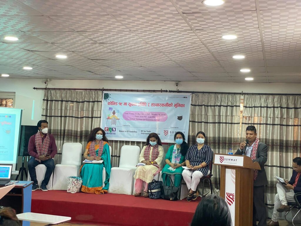 काठमाडौं । कम्प्युटर एशोसिएन नेपाल महासंघ ‘क्यान’ले कोभिड १९ मा सूचना प्रविधि र संचारकर्मीको भूमिका विषयक अन्तरक्रिया आयोजना गरेको छ । मैतीदेवीस्थित सन वे ईन्टरनेशनल
