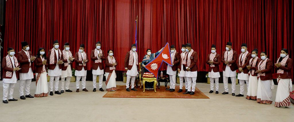 काठमाडाैं । टोकियो ओलम्पिकमा सहभागी हुने राष्ट्रिय टिमलाई राष्ट्रपति विद्यादेवी भण्डारीले विदाई गरेकी छिन्। राष्ट्रपति भवन शीतलनिवासमा एक कार्यक्रमका बीच नेपालबाट ओलम्पिकमा सहभागी हुने टाेलीलाई राष्ट्रपति