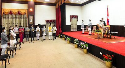 सुर्खेत । नेपाली कांग्रेस कर्णाली प्रदेश सरकारमा सहभागी भएको छ । आइतबार पार्टीको तर्फबाट सरकारमा सहभागी दुई मन्त्रीले शपथ लिएका छन् । मुख्यमन्त्री महेन्द्रबहादुर शाही नेतृत्वको सरकारमा