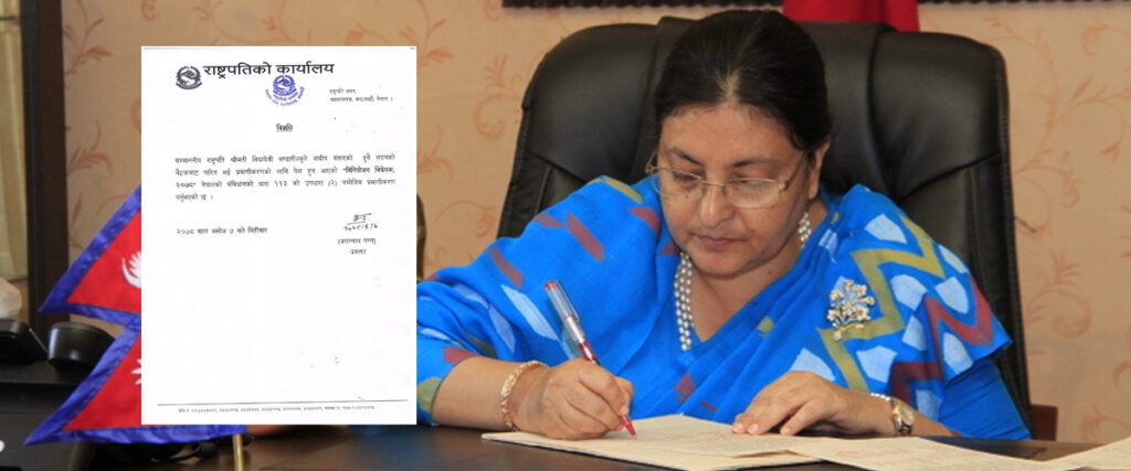 काठमाडौं । राष्ट्रपति विद्यादेवी भण्डारीले ‘बजेट विनियोजन विधेयक, २०७८’ प्रमाणीकरण गरेका छन् । संघीय संसद्का दुवै सदनको बैठकबाट आज पारित बजेट प्रतिनिधिसभाका सभामुख अग्निप्रसाद सापकोटाले