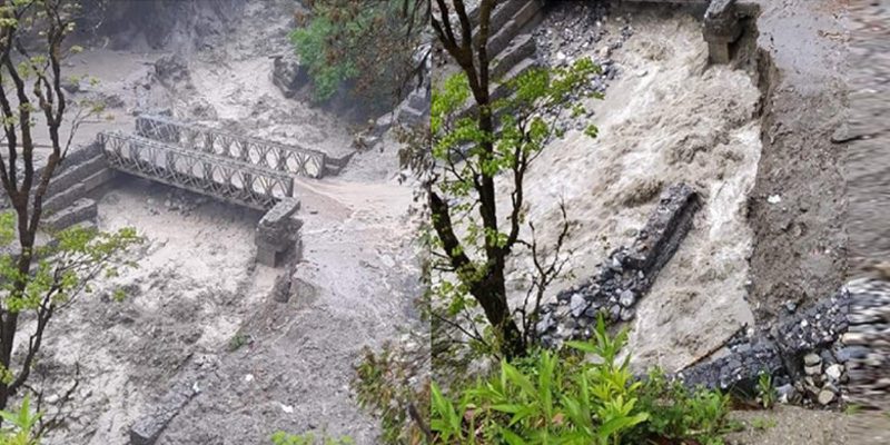 मनाङमा बाढीले पुल बगाउँदा सडक अवरुद्ध