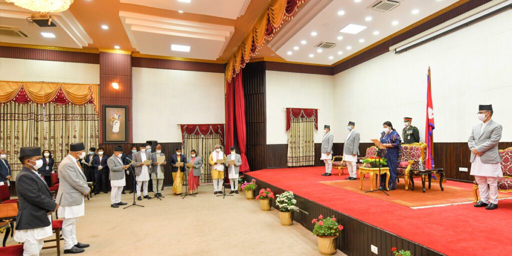 काठमाडौं । केपी शर्मा ओली नेतृत्वको सरकारमा नवनियुक्त सात मन्त्री र एक राज्यमन्त्रीले सपथ लिएका छन् । राष्ट्रपति कार्यालय शीतल निवासमा राष्ट्रपति विद्यादेवी भण्डारी समक्ष