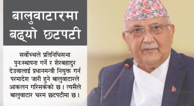 – Milan Limbu केपी शर्मा ओलीलाई न्यायालयले पदच्युत गर्यो । असार २९ गते शेरबहादुर देउवाले प्रधानमन्त्रीको सपथ लिए । जनतामा सकारात्मक आशा संचार भयो ।