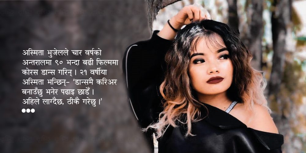 भनिन्छ, जहाँ इच्छा, त्यहाँ उपाय । धादिङ गजुरीकी अस्मिता भुजेललाई यस्तै लाग्दैछ । सानैदेखि नृत्यमा रुची भएकी अस्मिता अहिले कुसल डान्स कोरियोग्राफर बनेकी छिन् ।