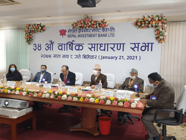 काठमाडौं, ८ माघ । नेपाल इन्भेष्टमेण्ट बैंक लिमिटेड (एनआईबीएल)को ३४औं वार्षिक साधारण सभाले १८.५ प्रतिशत कुल लाभांश वितरण गर्ने प्रस्ताव पारित गरेको छ । जसमध्ये