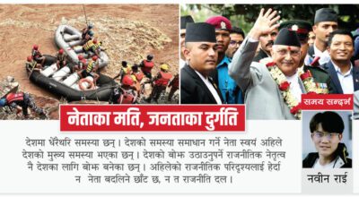 राजनीतिक दल र तिनका नेताको कारण आमनागरिकमा चरम वितृष्णा छ । अहिले नागरिकले हरेक स्थानमा निराशा पोखिरहेका छन् । नागरिकको जल्दोबल्दो विषयमा दल र नेताहरू