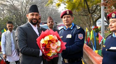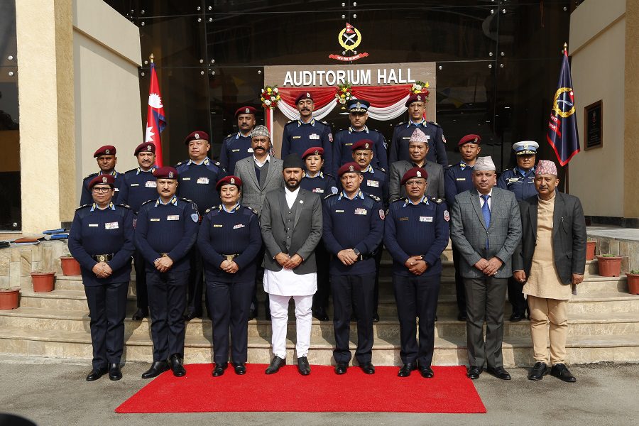 काठमाडौं । उपप्रधानमन्त्री एवम् गृहमन्त्री रवि लामिछानेले शुक्रबार नेपाल प्रहरी प्रधान कार्यालयको निरीक्षण भ्रमण गरी उपस्थित प्रहरी कर्मचारीहरुलाई निर्देशन समेत दिएका छन् । संगठनको बिकास