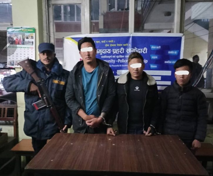 काठमाडौं । काठमाडौैंका विभिन्न स्थानमा चोरी र लुटपाटको आतंक मच्चाउने समूह पक्राउ परेको छ । बौद्ध क्षेत्रमा डकैती समेत गर्ने तीन जनालाई प्रहरीले पक्राउ गरेको