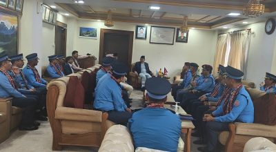 काठमाडौं । प्रहरी वरिष्ठ उपरीक्षकबाट प्रहरी नायव महानिरीक्षक पदमा पदोन्नति हुनुभएका १७ जना प्रहरी नायव महानिरीक्षकहरू दर्ज्यानी चिन्हद्वारा सुशोभित भएका छन् । प्रहरी महानिरीक्षक धिरज