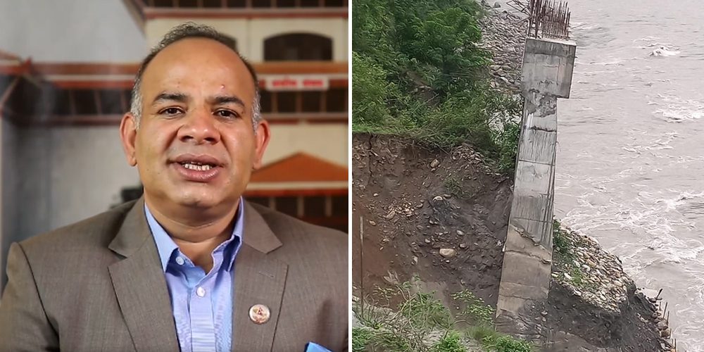 खोटाङ । वर्षा सुरु नहुँदै नदीको पानीले जग्गा कटान गरेपछि खोटाङ र उदयपुर जोड्ने सुनकोशीस्थित धाप्लाङघाटमा निर्माणाधीन पक्की पुलको खम्बा बाङ्गिएको छ । खोटाङको बराहपोखरी