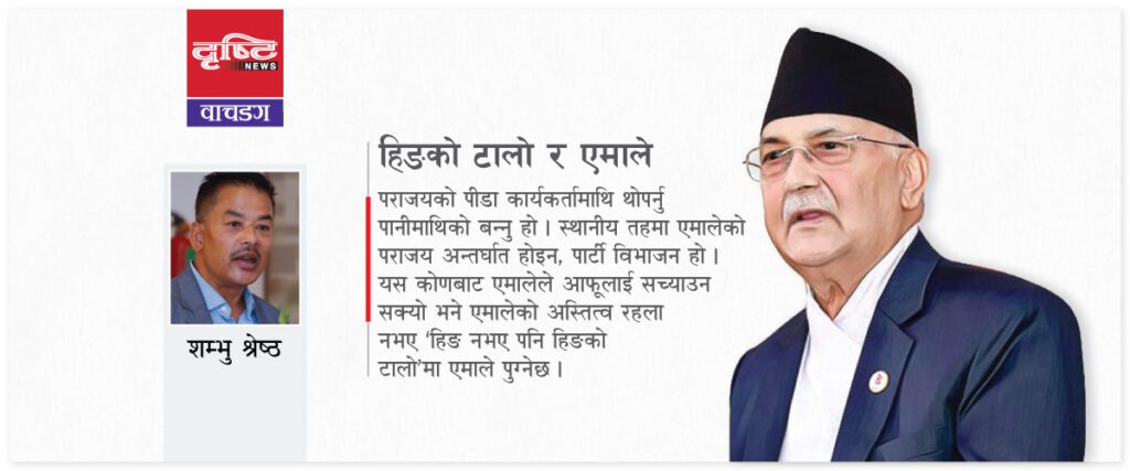 एमाले अध्यक्ष केपी शर्मा ओलीलाई ‘हार’ शब्द मन पर्दैन । त्यसैले स्थानीय तहको निर्वाचनमा एमाले दोस्रो दर्जामा झर्दा पनि जितकै गीत गाइरहेको छ । वैशाख