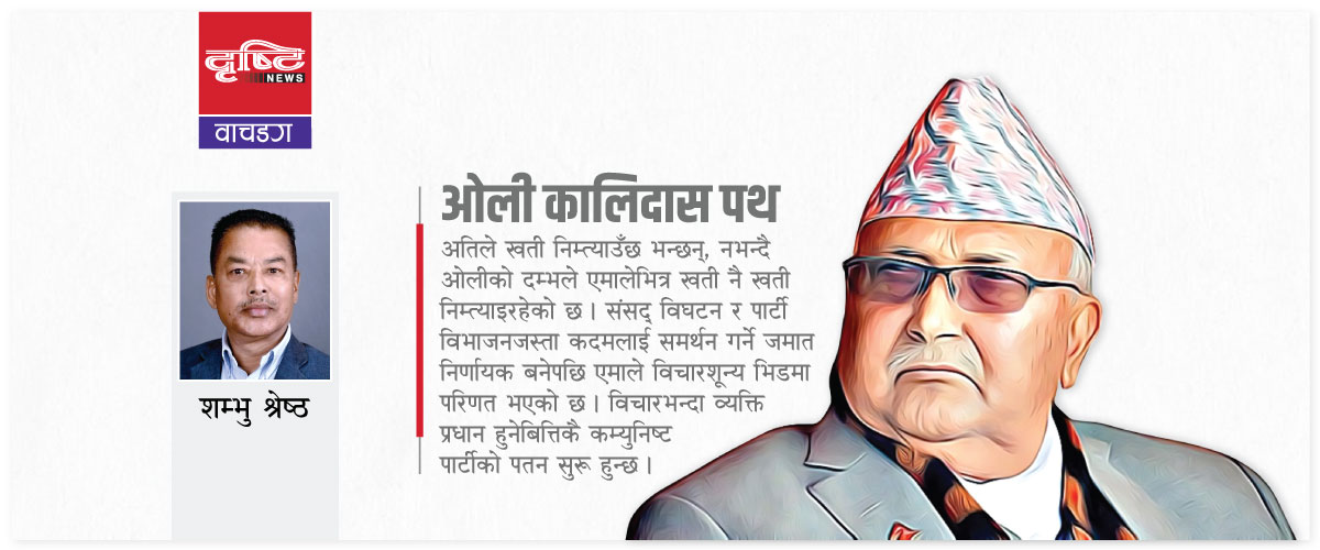 अतिले खती निम्त्याउँछ भन्छन्, नभन्दै यो कुरा नेकपा एमालेका अध्यक्ष तथा प्रधानमन्त्री केपी शर्मा ओलीको दम्भले एमालेभित्र खती नै खती निम्त्याइरहेको छ । ‘तै पनि