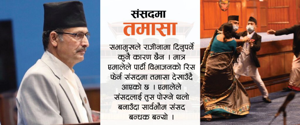 काठमाडौं । प्रमुख प्रतिपक्षी दल नेकपा एमालेले सभामुख अग्निप्रसाद सापकोटाको राजीनामा माग गर्दै निरन्तर संसद अवरुद्ध गर्दै आएको छ । तर, सभामुख सापकोटाले राजीनामा दिनुपर्ने