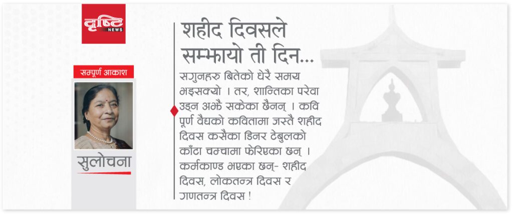 यसपालीको शहीद दिवस भर्खरै मनाइयो । शहीदका शालिकहरूमा चढाइएका माला अझै झुण्डिरहेकै होलान् । कर्मकाण्डमा मात्र सीमित नै किन नहोस्, यस्ता बेलामा केही लेख, स्मरण