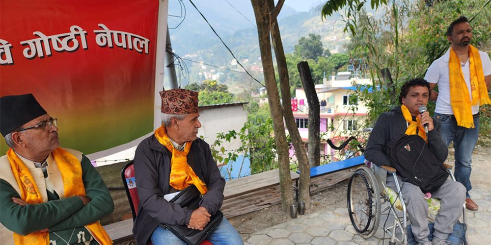 काठमाडौँ । टोखास्थित झोर महाङ्काल मा.वि.मा घुम्ती कविगोष्ठी नेपालको ११९ औँ शृङ्खला प्राज्ञ वियोगी बूढाथोकीको प्रमुख आथित्यतामा हालै सम्पन्न भएकाे छ । शनिबार साहित्यकार चेतनपथ