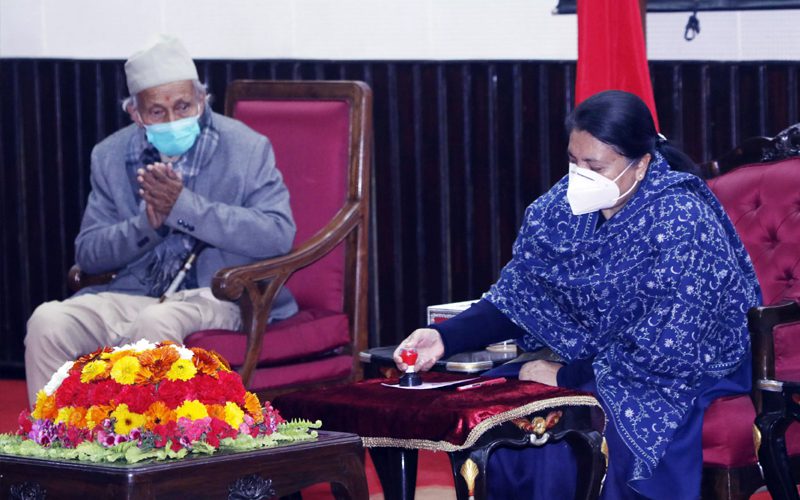 काठमाडौं, २० माघ । राष्ट्रपति विद्यादेवी भण्डारीले वाङ्मय शताब्दी पुरुष सत्यमोहन जोशीको तस्वीर अंकित हुलाक टिकटमा टाँचा लगाएकी छन् । फिलाटेलिक तथा हुलाक टिकट व्यवस्थापन